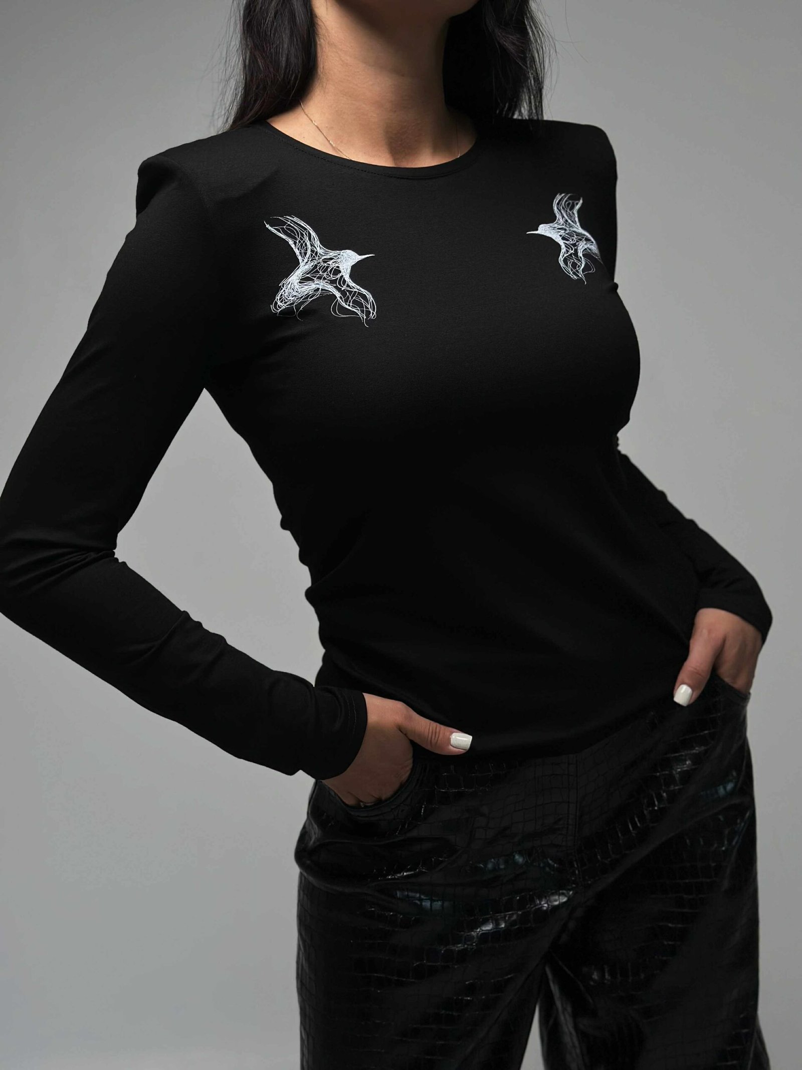Palaidinė ilgomis rankovėmis su petukais „Paukščiai”