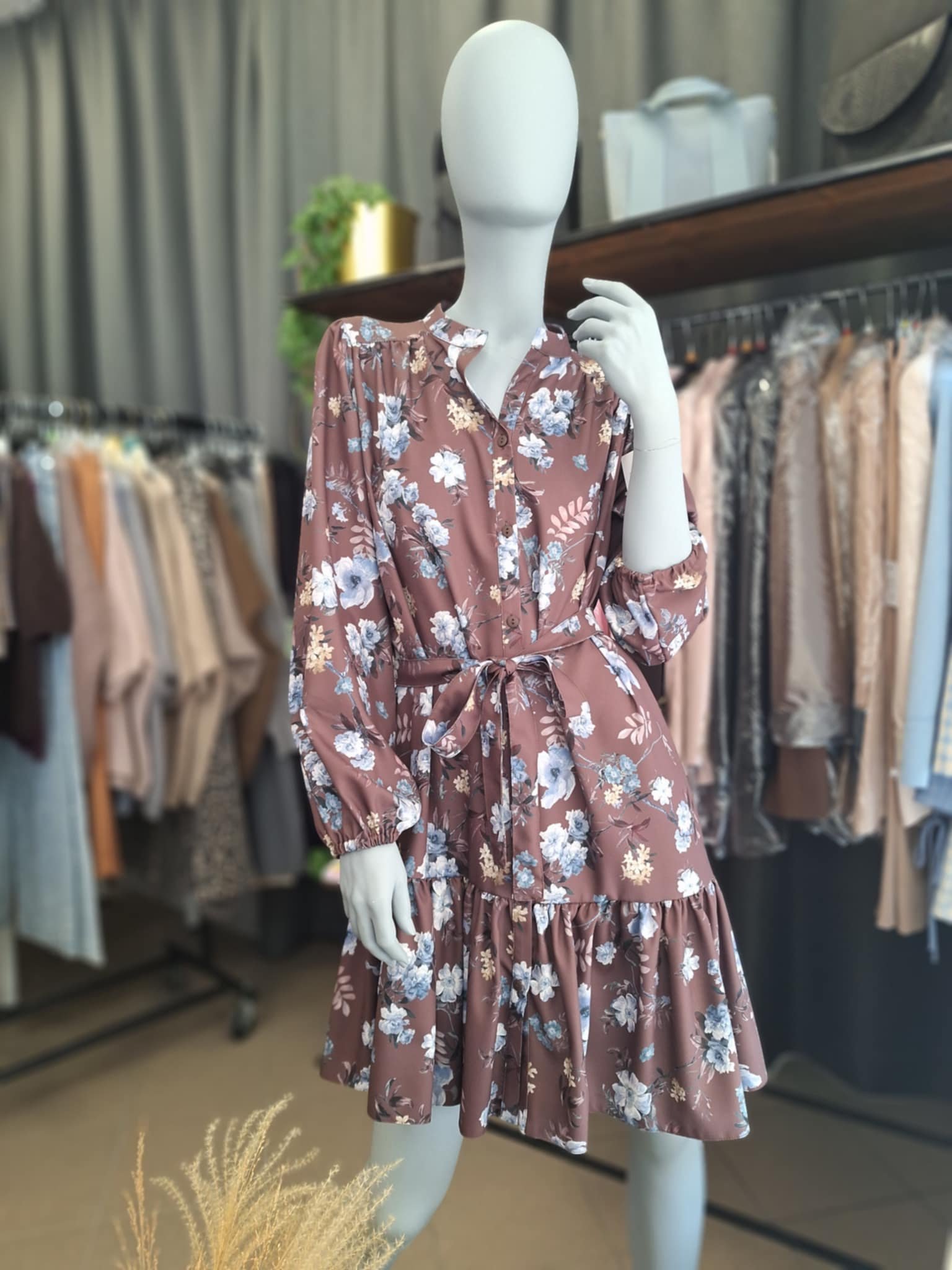 Gėlėta suknelė su raišteliu