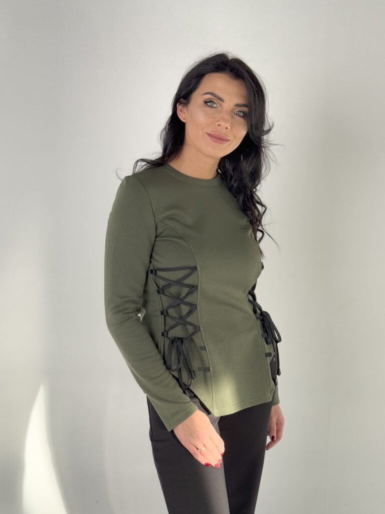 Džemperis su raišteliais – chaki