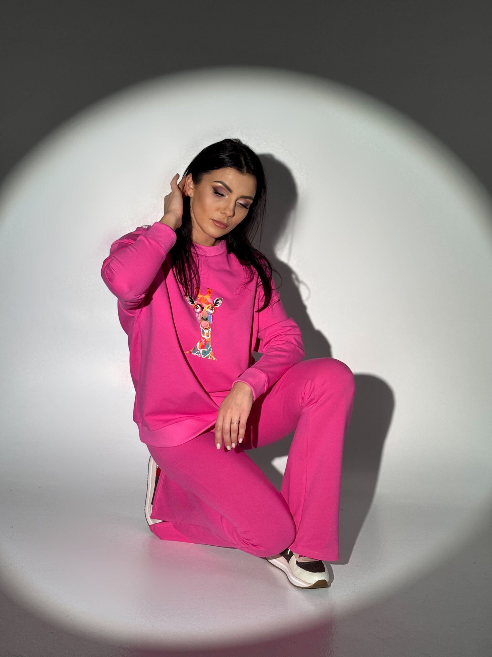 Kostiumėlis „Žirafa” – ryški rožinė (oversize džemperis kliošinės kelnės)