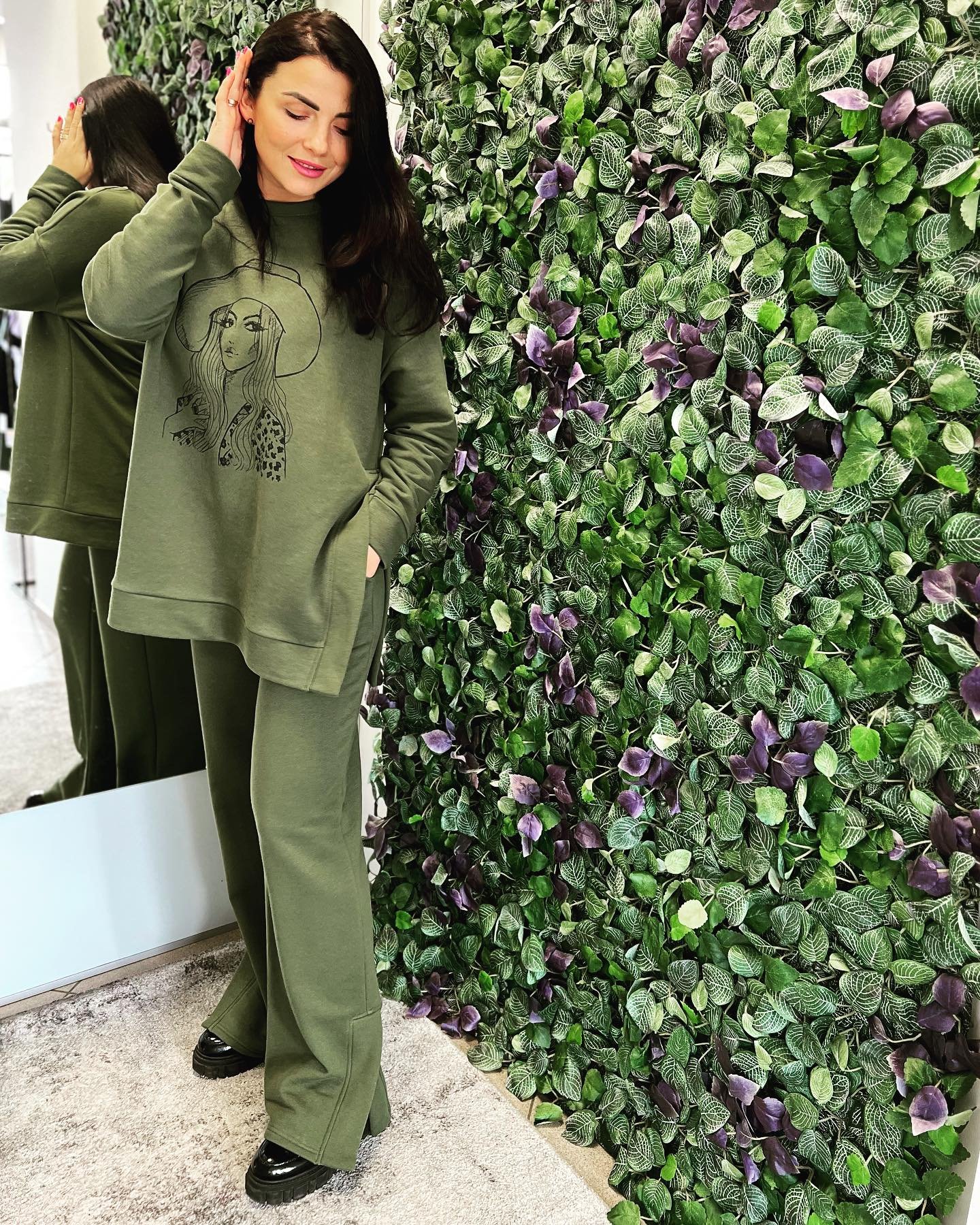 Kelnės S dydžio derinamos su oversize džemperiu XS/M.