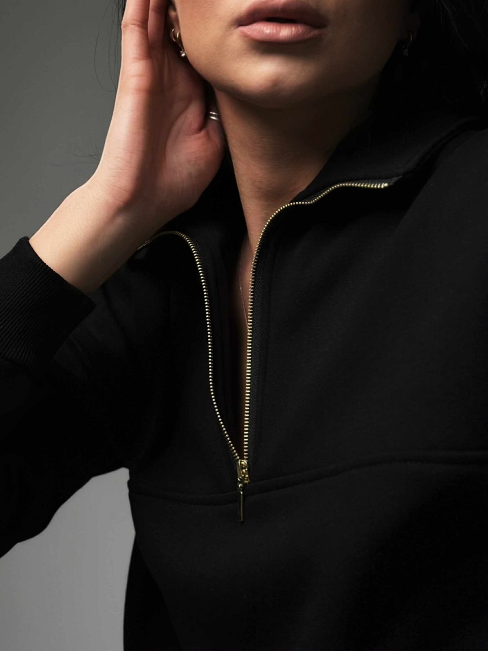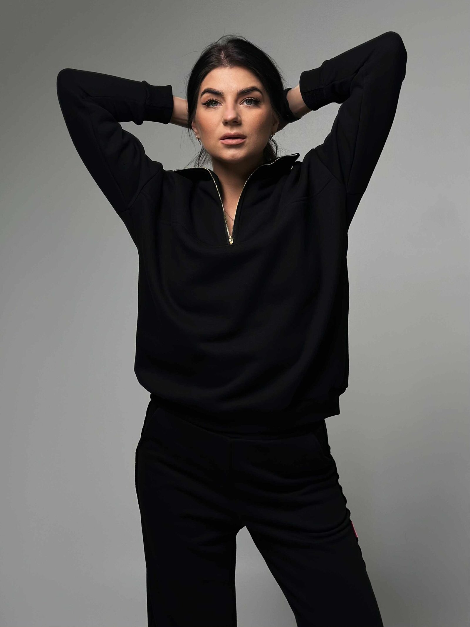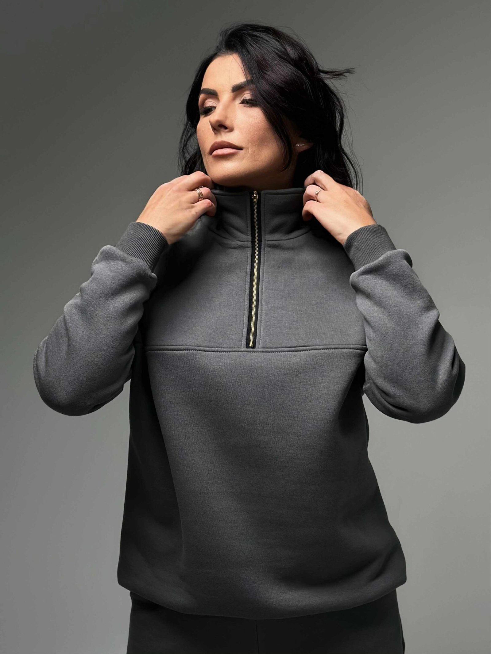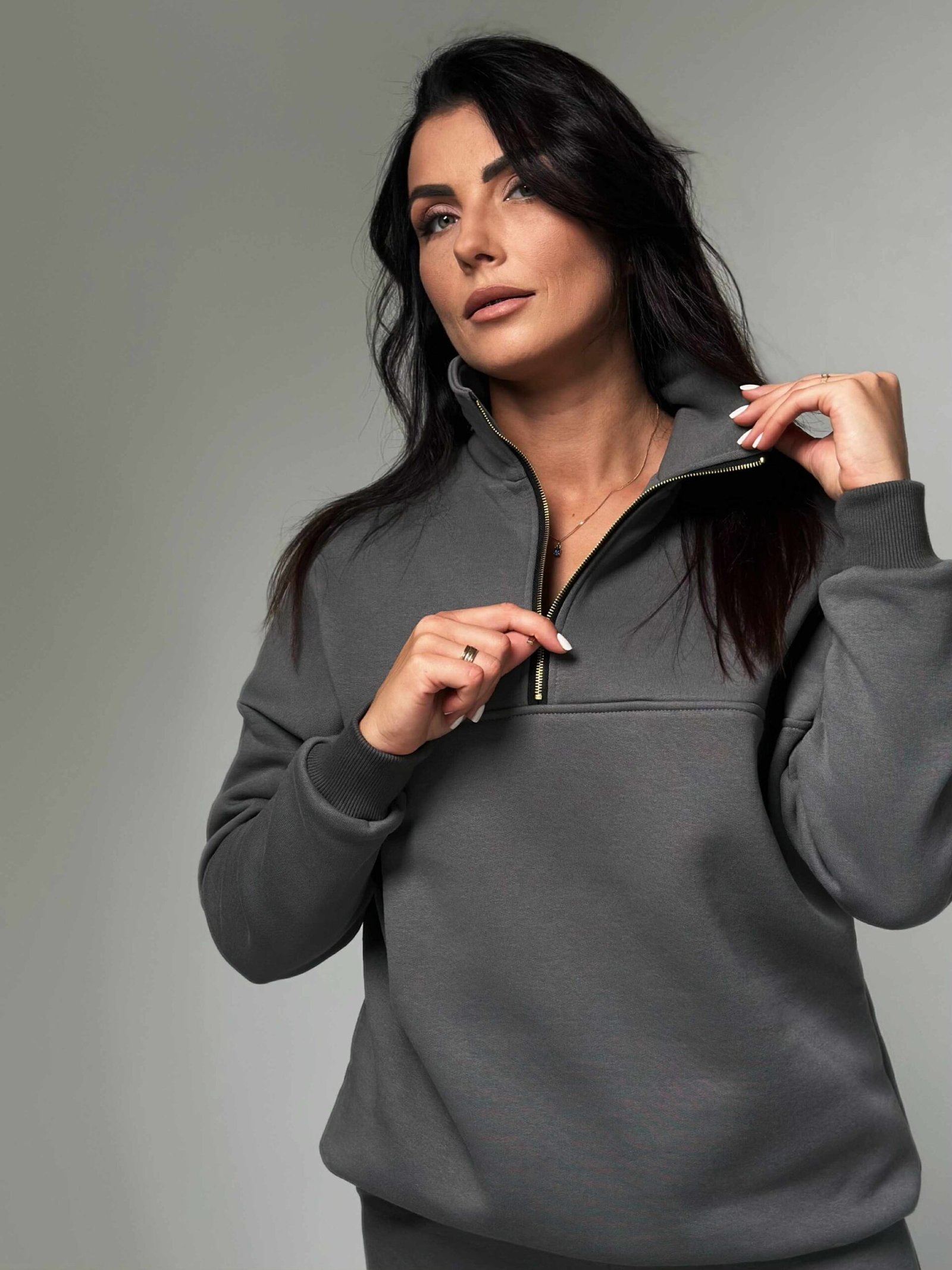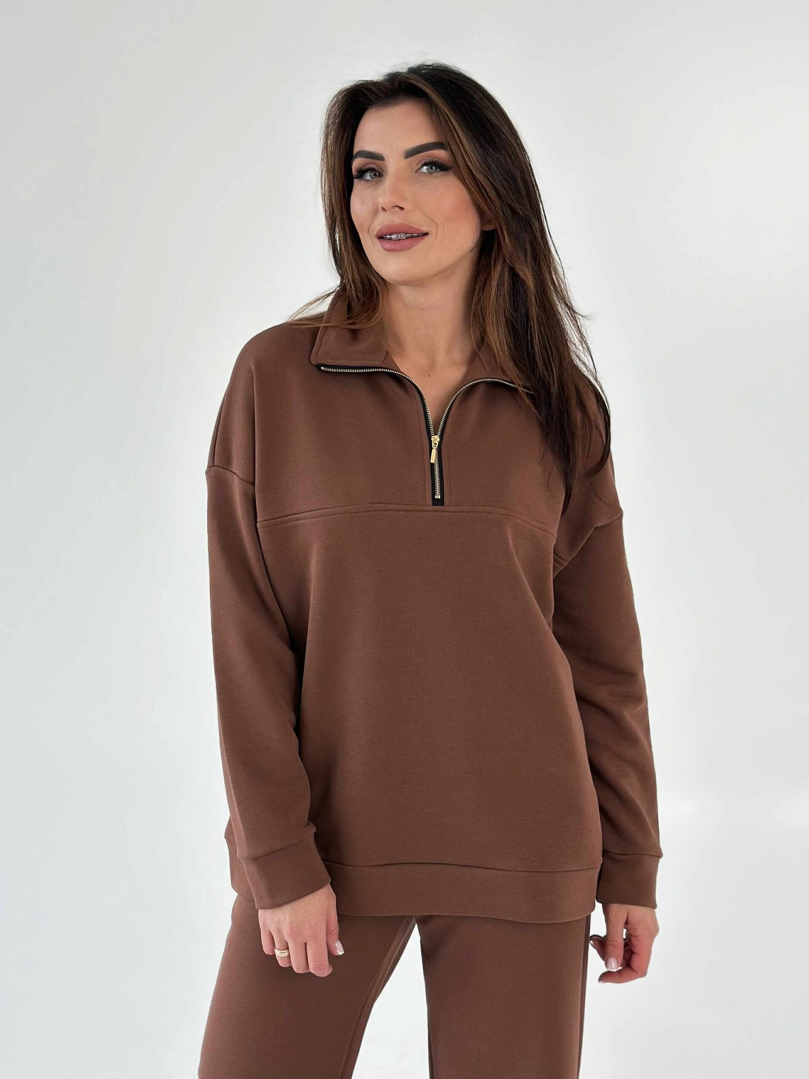 Oversize džemperis aukštu kaklu su auksiniu užtrauktuku