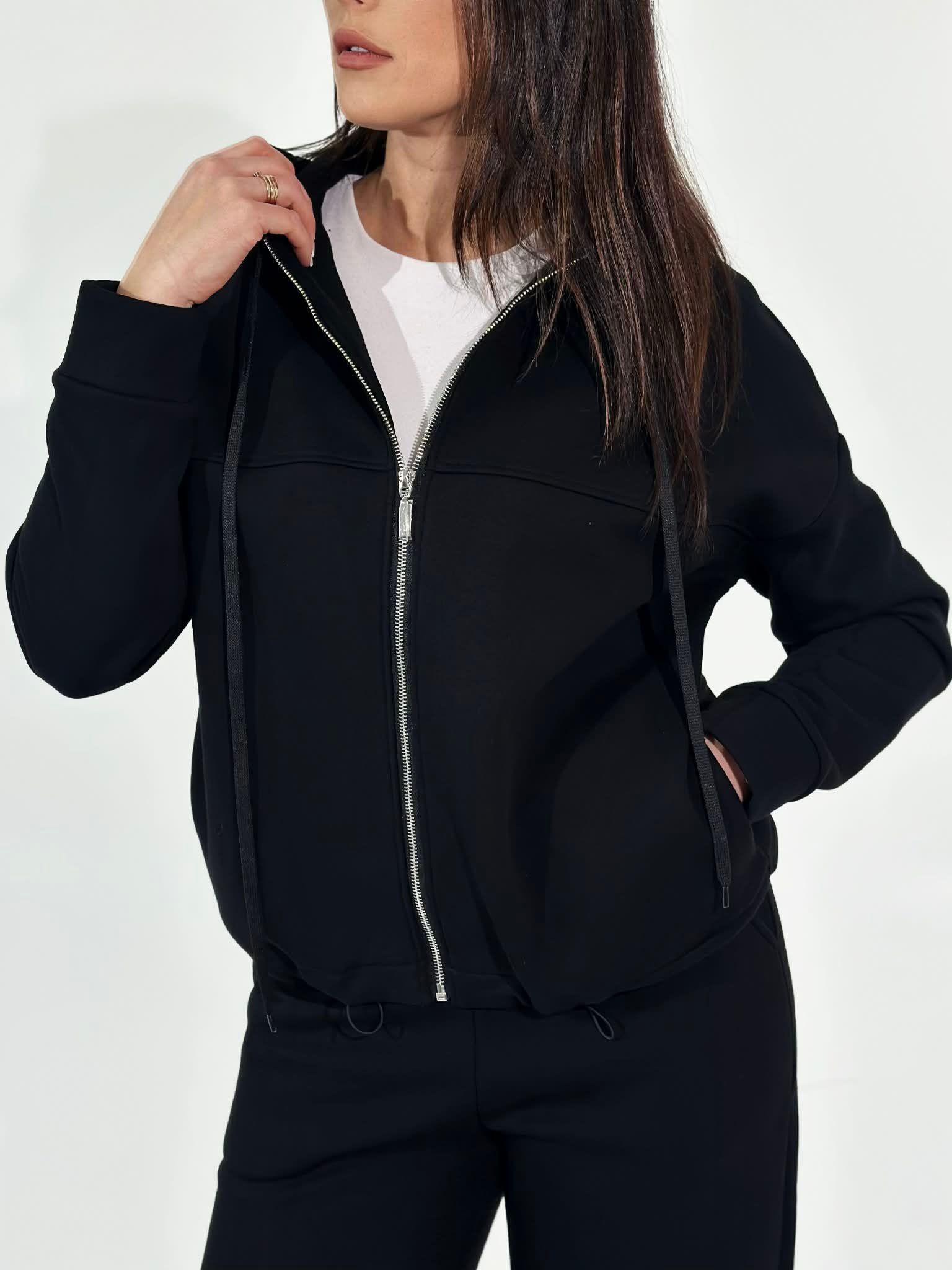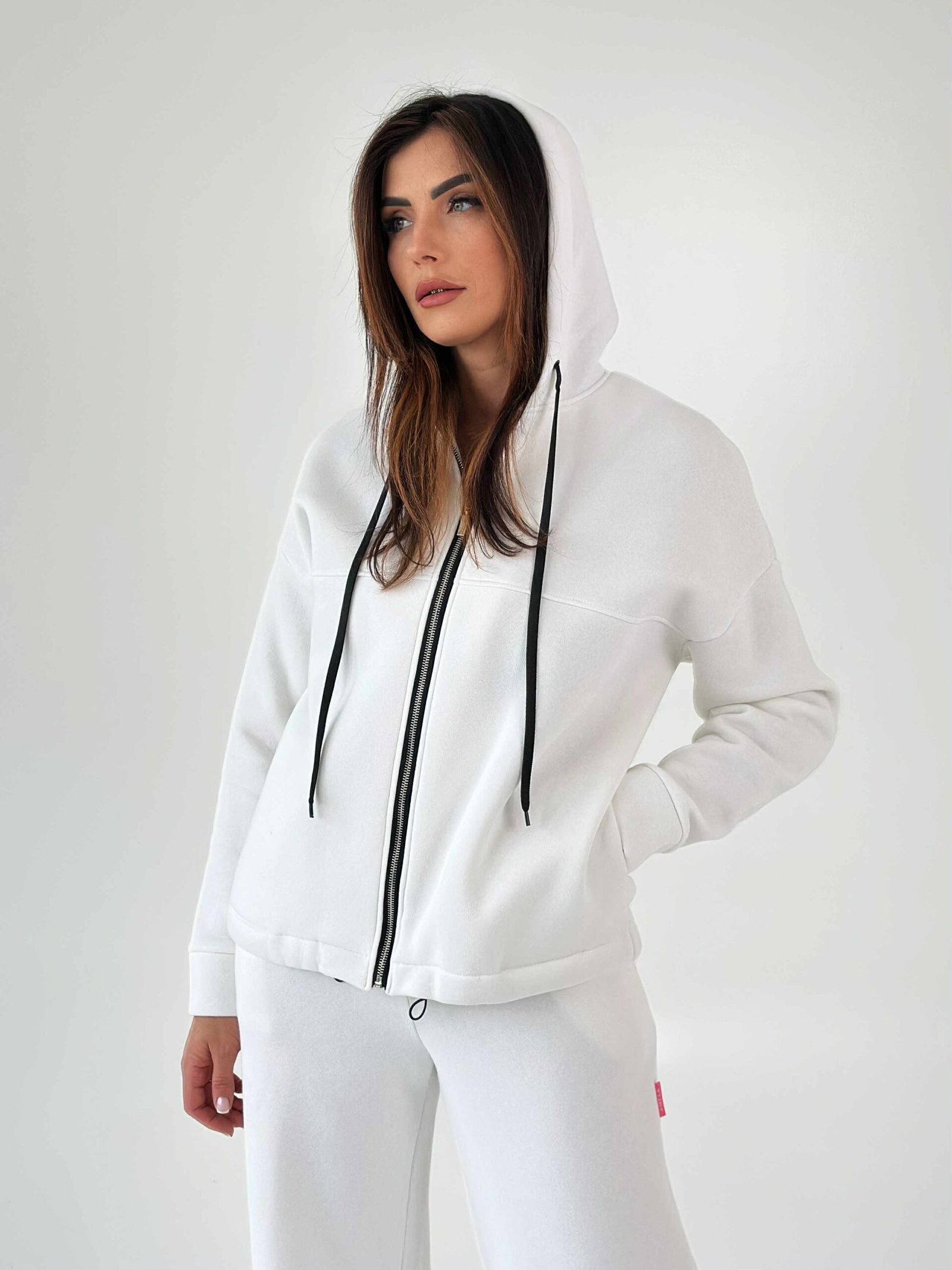 Oversize džemperis su kapišonu ir užtrauktuku