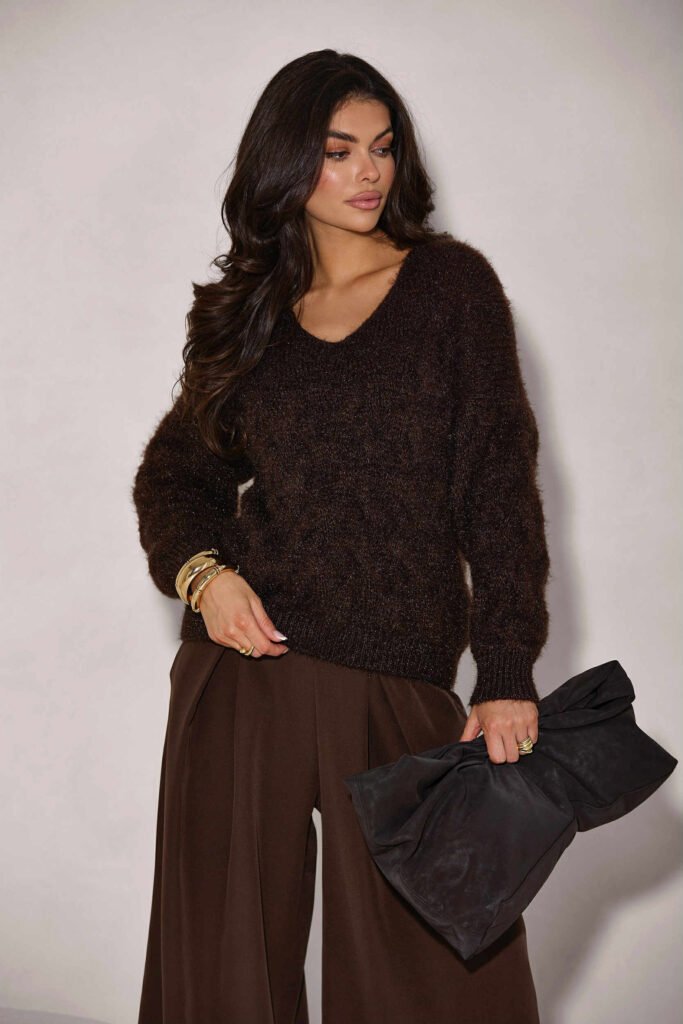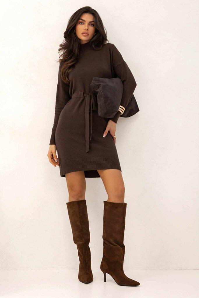 Šokolado spalvos suknelė su raišteliu