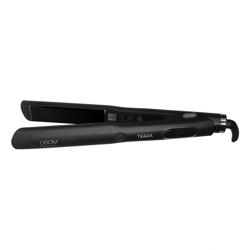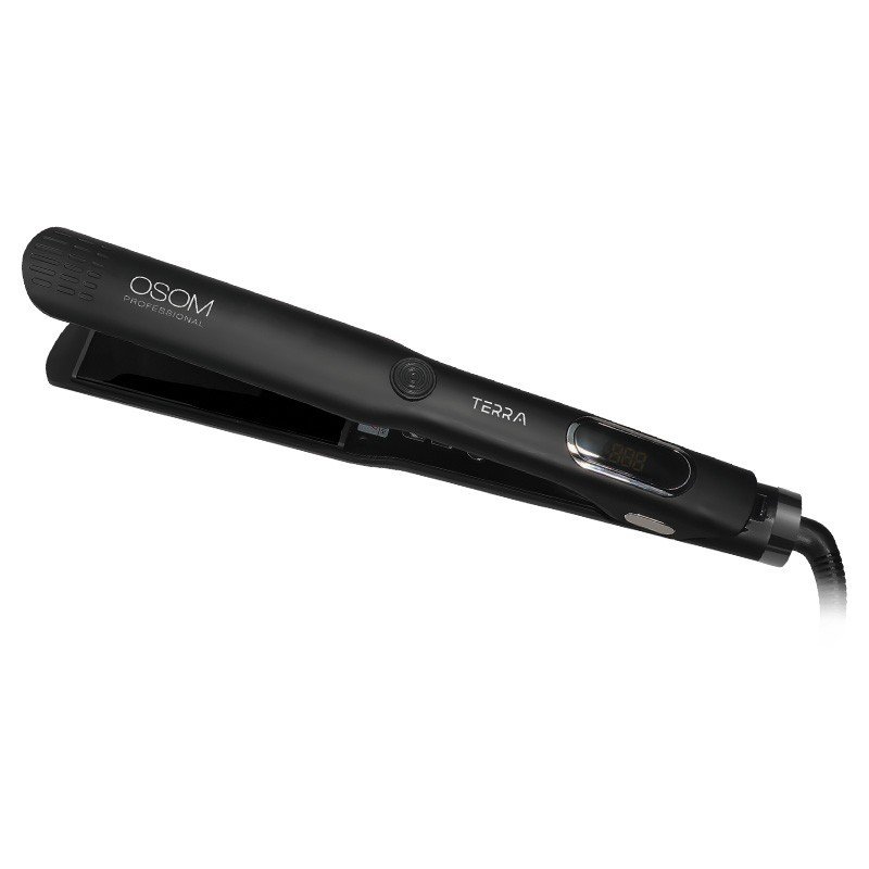 Pristatome pažangiausią plaukų tiesintuvą su keraminėmis plokštelėmis, papildytomis keratino mikro kondicionierių mišiniu – OSOM Professional „TERRA Hair Straightener“. Keraminės plaukų tiesintuvo plokštelės lengvai slysta plaukais, užtikrindamos tolygų karščio paskirstymą ir sumažindamos pažeidimų riziką, o pažangi neigiamų jonų technologija padeda panaikinti nepageidaujamą plaukų pūtimąsi ir sulaiko drėgmę, todėl plaukai ilgiau išlieka švelnūs,glotnūs ir sveikai blizgantys.